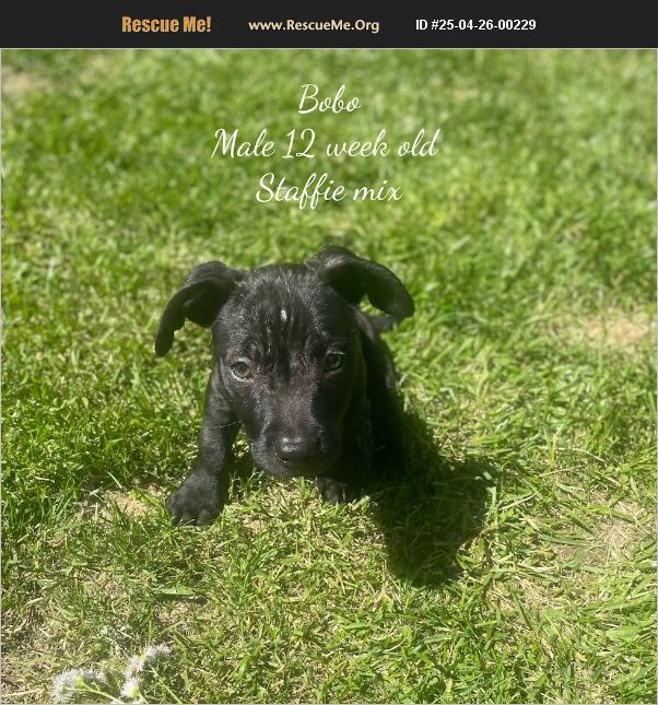 Available 5/10/25Name: Bobo Gender: Male Breed: unknown potential Staffie/Lab Bo is an outgoing pup. He loves people. Loved my grandkids. He enjoys playing outside, chasing his brothers and big dogs. He plays with all toys and loves fuzzy blankets and beds. Good with dogs and kids. Working on house training and crate training.