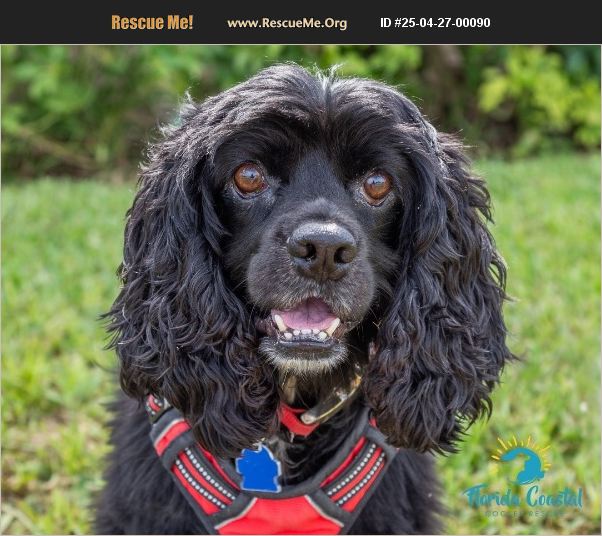 Meet Mykah, a magnificent looking 4 year old, 28 lb cocker spaniel boy. If you are looking for an exercise buddy, he is your boy! He still has the energy of a puppy and needs an active adopter/family - he gets a 40 minute walk each morning, swims every day in his foster's pool and 2 hours of play in the backyard in the evening and could go longer if his foster dad let him. He loves to run in the yard where he has taken up the time honored tradition of chasing squirrels. He loves toys and balls (and does not like to share them) and has found every last one in his foster home. Mykah loves to go on walks and is strong! He wears a harness without issue and is working on his leash walking skills. He will need continued training to become more secure when he sees other dogs and cyclists. He is dog selective - good with his foster brother, an older dog but NO CATS. Mykah is very snuggly and affectionate with his chosen human and attaches to that person quickly. As such he needs an ADULT ONLY home (NO KIDS). He does ok in the car but needs to be crated (which he is fine with). He has a great appetite - no worries there - and has developed a taste for cheese. He is great for brushing, grooming and ear cleaning. Mykah prefers someone to be home more often than not and will bark when left alone or wants your attention. For that reason, we are looking for an adopter with a single family home, a fenced-in yard with pool and where he will not be left alone for long periods. If you would like to make Mykah a forever member of your family, please complete an application through our website: www.floridacockerrescue.org. His ADOPTION FEE is $350.