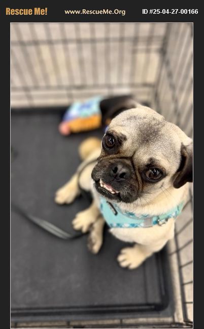 Hansel is an adorable 8-month-old Pug that weighs about 12 lbs. He was rescued from a puppy mill in Tijuana, along with his sister Gretel. He is very sweet, especially with his cute underbite. He is great with other dogs, kids and adults. If you are interested in Hansel, please complete the application on our website: www.adoptmerescue.org. LOCAL AREA ADOPTION ONLY