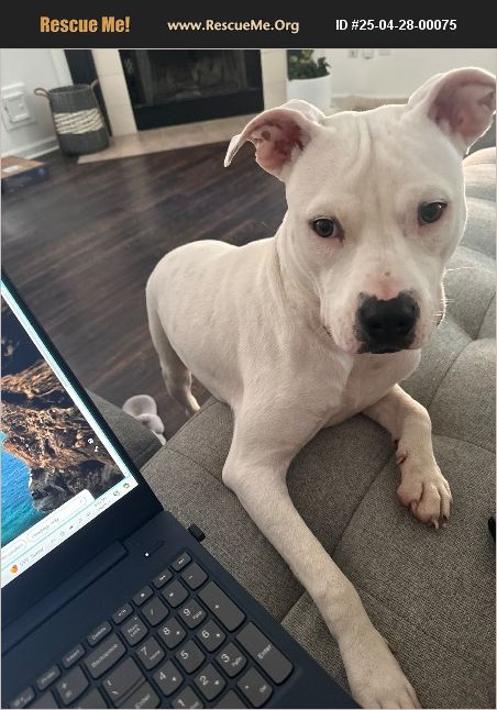 Sweet bull terrier mix. She listens, is relatively calm except when walking. She gets anxious and pulls when she sees other dogs. At the house, she doesn't destroy anything and is fully potty trained. The only thing is she always destroys all her dog beds but loves to lay in anything soft. She's a sweet girl who loves to play and the sun and be outside in the patio.