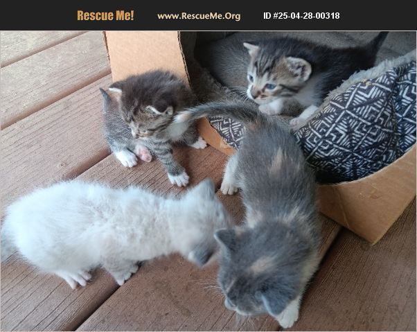 Ash is the smallest (boy) kitten. He is also the very sweetest and seems to love love. He is the black/gray with white toes on the far left outside of the box. Their mother (a stray) was killed recently, and our landlord will not let them stay here. Must find home ASAP!