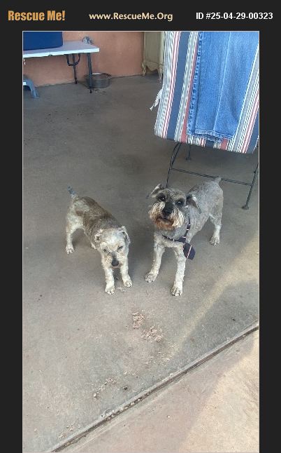 Two miniature schnauzers that have been together since they were two they are now 11 and 12 years old. I need to be rehomed as taking care of elderly parents make it difficult to give these to the Love�%9D%A4��%8F they need. They are both silver. They are spayed and neutered and like their every two month haircuts.