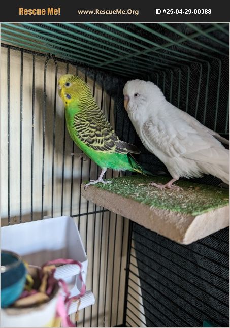 Bonded pair, Green is named Dino( 2020) and White is Echo(2019). I am unable to take care of them as my living situation has changed. I want them to go to a good home. They loves mashed carrots and will always get the last word in.