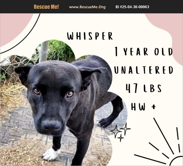 Whisper came in with her sister at 6 MONTHS OLD and has wasted over half of her life being ignored. She has no idea what a soft bed or a fully stomach feels like. She will require patience and love but you will be rewarded with cuddles and kisses and a lifelong loyal companion.