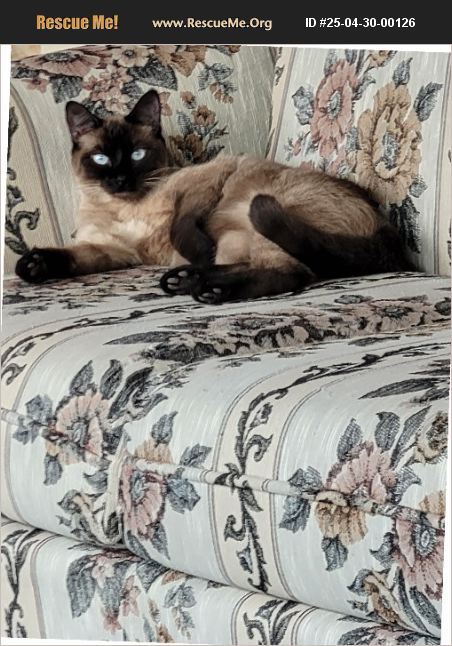 This animal is available to licensed rescue groups only. Please do not enquire unless with a licensed rescue group. Lucy was given to me from a family who said they found her. They have young children that frightened her and she began trying to defend herself. I named her Lucy. I have always had dark Sealpoint Siamese and understand their character. I have had her spayed. My husband and I are healthy but we're in our eighties so, we hope her new owner will be her forever family. She's so sweet now and talks when she wants you to follow and then try to realize what she wants. We think she will eventually become a lap sitter because she travels across us on the sofa to choose her spot to curl up for a nap. Also, she looks for us and calls us when we're in another room.