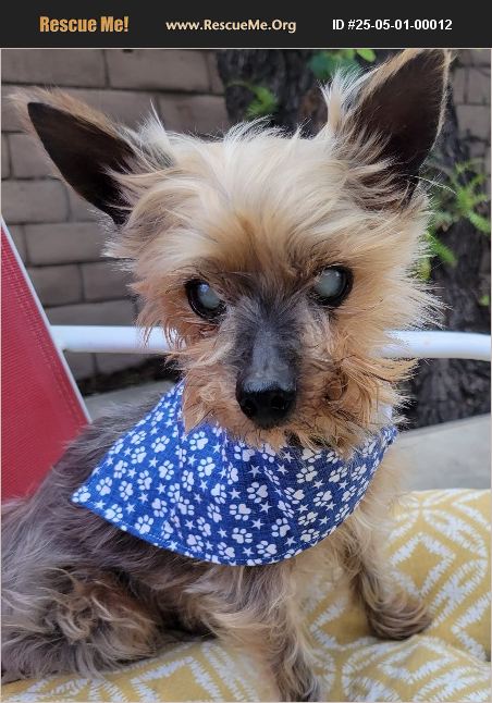 Meet Leo- The sweetest little old man you have ever encountered. Leo came to YROA through a good Samaritan, who literally found him in the street. He was emaciated, filthy matted, and covered in ticks. Poor Leo also had a rotten mouth. He was not neutered, and we believe had been used as a puppy mill breeder. Leo is also blind, and we have no idea how he survived on the streets The good Samaritan, who found him reached out to us to see if we could help. We had him take Leo directly to our vet. He was given a medicated bath and shaved down. The vet took over 50 ticks off of him. He was also given a medication to kill any other fleas, ticks and their eggs. He had full labs, vaccinations, a Microchip, a dental and a neuter. He lost his 16 remaining teeth. With all of that and God knows what else he endured before he was rescued, Leo is nothing but pure joy. He's a happy guy who has learned his way around his foster mommy's home and will go to the potty outside if taken out regularly. He does have an occasional accident if left too long as he cannot see the pee pads and hasn't quite figured that out yet. He does know where the food and water bowls are and his favorite bed. He loves to wander around the yard and smell the flowers. Supervised of course. He's also amazing in the car and sits happily in the booster seat. He loves to cuddle and is in complete gratitude about all he is receiving. What a happy little guy. Leo is ready for his forever home and deserves a wonderful final chapter. Leo's 14 years young and 6 lbs of joy. Can you open your heart in your home to Leo? He is located in Los Angeles. Applications can be filled out at www.yorkierescueofamerica.org