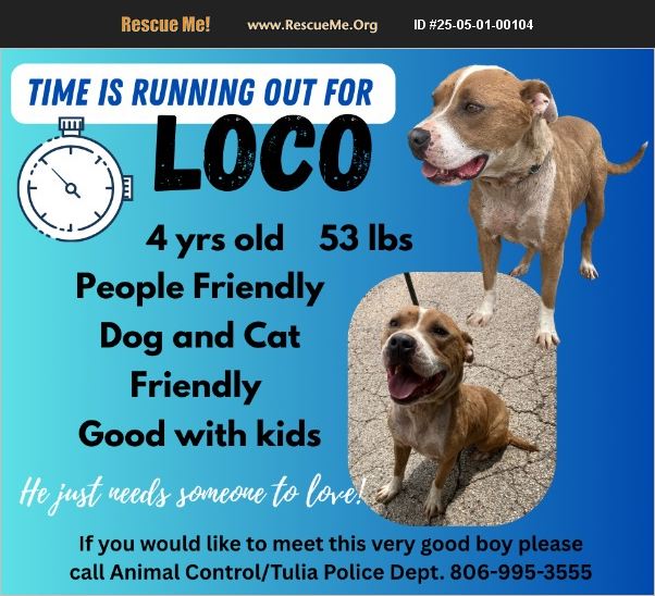 Poor Loco was abandoned by his owner & the homeowner surrendered him to the pound. Despite his neglect, he's still incredibly friendly and loves everyone - big people, little people, dogs and cats! If you would like to meet this sociable guy please call today!