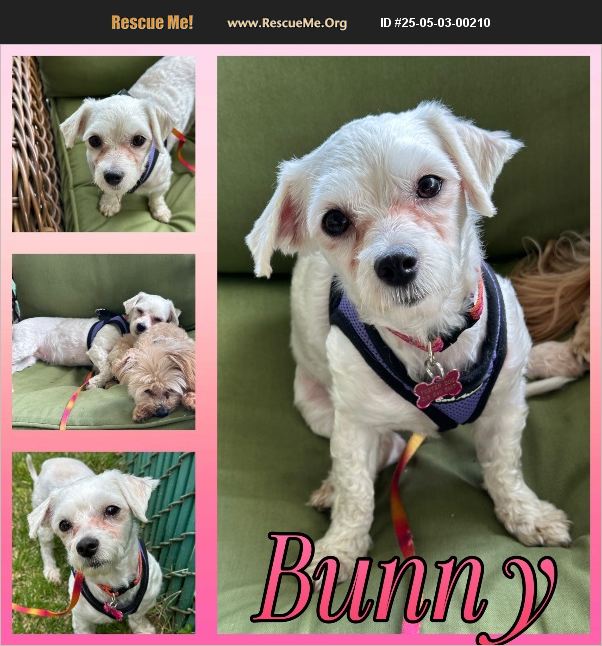 Updated Pics & Bio - ? Meet Bunny - A Fluffy Work in Progress ??Breed: Maltese Mix?Age: 4-5 Years?Sex: Female?Nicknames: Mommas, Momma Bunny, Chris ( don't ask) Bunny is a shy little soul who's still learning how to 'dog.' Retired from a commercial breeder, she's had a tough start, and now she's ready to find her forever home. Life's been scary, and she needs someone with patience, empathy, and maybe a PhD in soft voices and snack-based trust-building. She won't be your instant cuddle buddy-but give her a few months, and she'll claim your bed like she's always been there (because she will be ?). Bunny does best with another calm, confident dog-they help her feel secure, especially when you're not home. Her separation anxiety disappears like magic when she has a furry friend to hang with. ?? Crate & House Trained? Yep-plus she's a responsible lady who knows how to use pee pads, just in case.?? Walk Queen Alert: Loves long strolls and sniff-safaris like a true adventure pup in training.?? Plays Solo: Bunny's idea of a party is tossing toys to herself and pretending she meant to do that.?? Houdini Tendencies: Needs supervision outside or she might try a great escape. Not because she doesn't love you-just because she's still figuring out what 'safe' feels like. Ideal Home: �'ۢ Has another dog (non-negotiable-her emotional support sibling) �'ۢ Chill, patient, and okay with earning trust slowly �'ۢ Comfy bed-sharing policy (she called dibs already) �'ۢ No apartments, please! Bunny's separation anxiety combined with loud noises isn't a good fit for apartment living. Bunny is not broken-just a little cautious. With time, she'll be your loyal shadow, nap partner, and quirky little lovebug. ?? Intetested in adopting Bunny? An application can be filled out at Dogtownrescue.org Dog Town Rescue 1553 Bethlehem Pike, Hatfield, PA 19440?PA Kennel License #12275