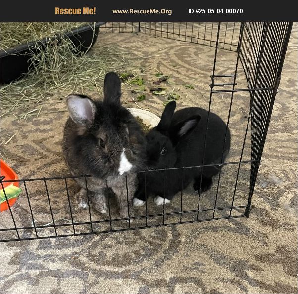 Bugs Bunny (M, age 6) and Pepper Bunny (F, age 5) are a bonded pair of rabbits. Both are short hair, although we think Bugs Bunny may have a bit of lion head mix. They are both well tempered and don't mind being handled or held. They are litter boxes trained and able to roam around our house with minimal supervision. They have been wonderful pets, but our circumstances have changed and we need to find them a new home. They should stay together as they are bonded. Adoption will include all their belongings, carrier, food, enclosure (about 6 feet wide and 4 feet tall). Let me know if you'd like to know more!