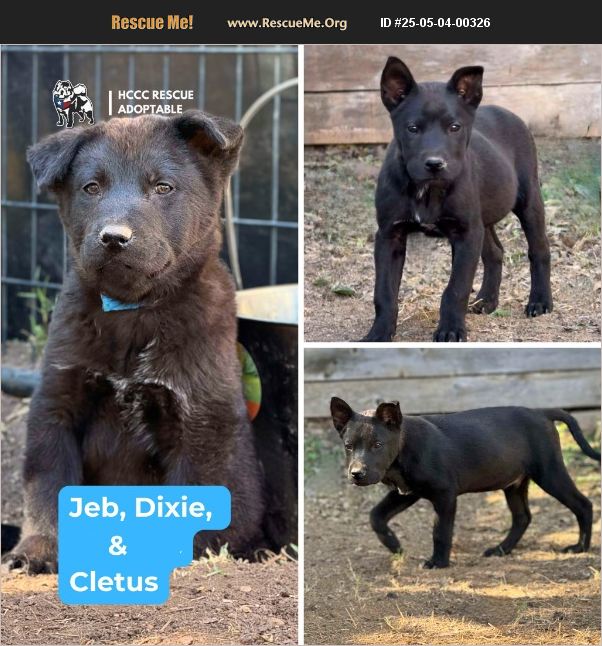 These adorable fugitives were caught running at large in Oklahoma and thrown into the clink! Too shy for open adoption, their future looked bleak-when HCCC swooped in. Rescued and given a fresh start, Dixie, Jeb, and Cletus are learning that life is full of love, treats, and snuggles! About the Gang: Dixie - The brave leader, always the first to explore! Jeb - Sweet and thoughtful, the observer of the group. Cletus - A goofy, playful troublemaker (and escape artist!). These pups are learning fast-potty training, crate training, and even coming out of their shells with some love and patience! While they're still a little reserved, they warm up quickly and are already showing their affectionate, playful sides. Looking for a puppy? If you're patient, loving, and ready for a new adventure, these cuties are waiting to meet you! They'll do best in homes that understand they need a little time to adjust but will reward you with loyalty and love. If you are interested in adopting, please complete an application @ https://form.jotform.us/41173109602142. Once approved, home visit and reference checks are also required. If you have further questions outside of this listing, please email [email protected].