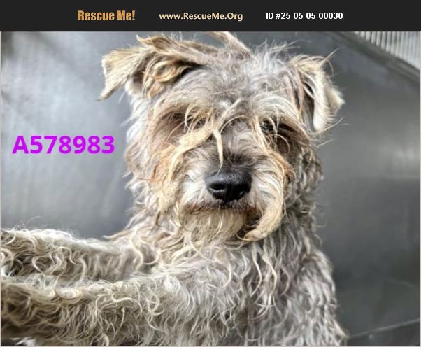 Species: Dog Breed: Terrier Color: Gray and black Gender: Female Age: Approximately 6 years old Description: I arrived at the San Bernardino City Animal Shelter on 04/30/2025 from San Bernardino. Current Location: San Bernardino City Animal Shelter, Kennel: 086 Info: I'm currently on a stray hold, which means my family might be looking for me. If I'm not claimed, I may be available for adoption starting 05/07/2025.