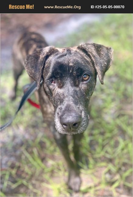 Thanks to a generous donor who fell in love with my story, my adoption fee is FULLY SPONSORED! Hi I'm Skye! I landed at Guardians of Florida Animal Rescue after being found huddled in the corner of a building with my sister as little babies. I came to the rescue with an injured right eye - I don't know whether it was a result of trauma or a birth defect, but it doesn't matter to me - I just need a family who it doesn't matter to either! At the rescue, I received the medical and general care to be ready for my new forever home. My sister got adopted and I'm waiting patiently for my turn. I'm estimated at a little over a year now and last weighed in a bit under 50 lbs. I'm dog and people friendly, just may be a little shy at first, but will come around pretty quickly. I don't seem to care too much about the cats hanging around. I appear to be a lab mixed with a brindle like a dutch shepherd or plott hound, but that's just the rescue's best guess. My adoption fee includes vet check, up to date vaccines, spay, heartworm test (negative), microchip and deworming, all already done. If you are interested in adopting me, please complete a free non-binding application at www.gofar.dog under Adopt!