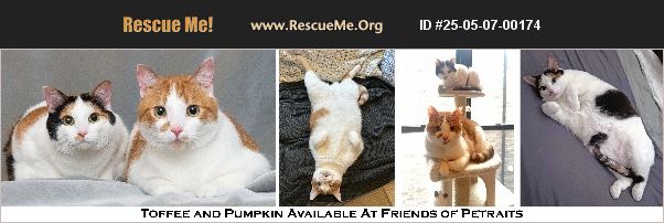 Pumpkin and Toffee are gorgeous, playful and sweet, five-year-old, sibling cats looking for a loving guardian together. Pumpkin is a male red and white 17 pound patch tabby; his sister Toffee is a 15 pound calico. They are very loving and sweet with people and are waiting for a loving family while in foster care. They have proven to be all-around fabulous felines who use their litter box and scratching post like good kitties and love to get up high in their cat tree. They love to snuggle, be brushed, and be pet. They crave human attention; Pumpkin is the ring leader, but Toffee comes running when you bring out the brush. Pumpkin and Toffee love crinkle toys, mouse toys, anything sprayed with catnip spay, running through their tunnel and chasing the feather on a stick. Pumpkin and Toffee are neutered/spayed dewormed, vaccinated for distemper and rabies, virus tested negative for FIV/Felv, and microchipped. They are easy to hold and allow you to trim their nails. They are looking for a family that will take them into their heart and home and give them the life they deserve. To meet and possibly adopt Pumpkin and Toffee, please fill out an adoption application https://friendsofpetraits.com/cat-adoption-application/ After the application is complete, please contact [email protected] to schedule an appointment to meet them. Their adoption fee of $300 as a pair benefits the Friends of Petraits Rescue. They are currently being fostered in Chicago. They come complete with everything you need to care for them!