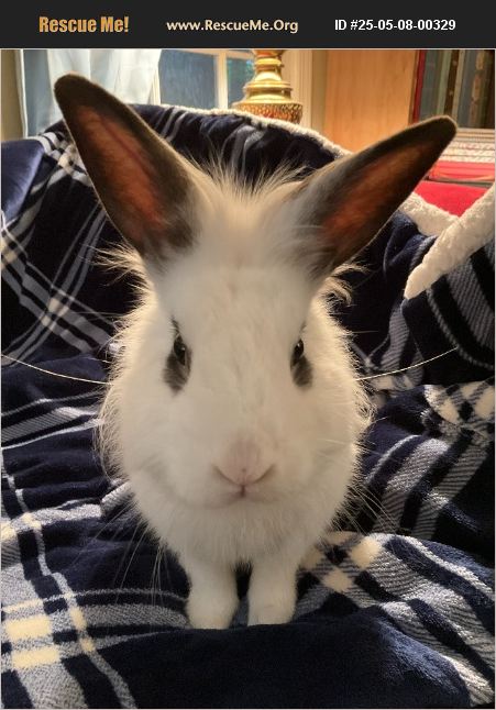 Sammy is a friendly, people-loving, lionhead-mix bunny who was living outdoors on his own until a Good Samaritan rescued him and introduced him to me. Sammy is beautiful, healthy (per his 4/28/25 vet visit), and very sweet. He loves to be petted and have his ears scratched. He expresses his zest for life by jumping in the air, twirling around, and doing zoomies. Periscoping and running through his candy cane tunnel are favorite pastimes. This entertaining little guy needs to live indoors and would do best in a home where he can free roam among his people most of the time. He is great at using his litter pan and is an expert self-groomer. He talks/snorts now and then, runs toward me when he sees me, and is fine being picked up. He enjoys licking me, climbing on me, and having his eyes rubbed lightly. Sammy is a delight to be around. I don't know how Sammy would get along with other rabbits, dogs, cats, or small children. At 3.2 lbs, he is quite fragile and probably should not be in a home with small children unless very closely supervised. Sammy is potential prey for all other animals and probably should not be left alone with dogs or cats. Sammy eats Oxbow Essential Adult pellets, Science Selective House Rabbit pellets, romaine lettuce, cilantro, green and red leaf lettuce, and plenty of timothy hay. He likes Oxbow Baked Apple & Banana treats and chew toys. He drinks water from a bowl. Sammy is still a baby at 7 months old. Sammy has an appointment to be neutered on 5/13/25, so he will be ready for his new home by 5/20/25. Please contact me if you are interested in adopting Sammy into your family, even on a trial basis. Sammy would enjoy being someone's companion. Sammy's adoption fee is $100 to help cover his neuter procedure and annual exam.