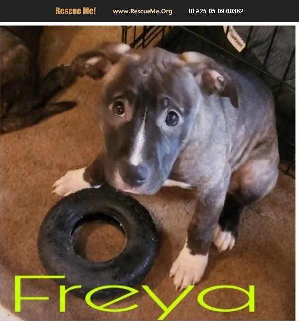 Freya is six month old pit/rot mix. She is very loving and active. Unfortunately due to our living situation she is not up to date on vaccines or fully potty trained. She is kennel trained , knows sit and stay. We can no longer take care of her due to expenses and living in a 28'trailer on a friend's property.