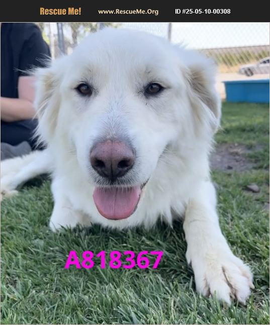 Located: Devore Shelter Name: My name is Forest. Description: I am a white, spayed female, who looks like a Great Pyrenees mix. Age: I am estimated to be 4 years old. More Info: I am in kennel D 60. I have been at the shelter since May 05, 2025. I was found near El Mirage.