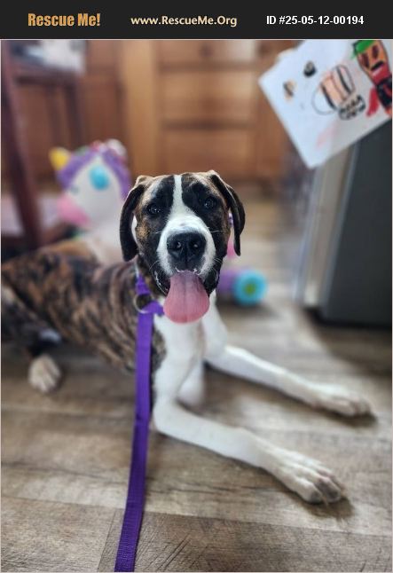Berkleigh Our dopey darling is a 6 month dane pit mix. Watching Berkleigh run is like watching a deer on ice or a horse learning to use its legs for the first time. She is so clumsy and adorable. Berkleighs parents couldn't take care of her any more and knew she needed more attention than they could provide and thanks to an amazing foster, here we are. This girl is good with other dogs and kids! She doesn't realize her size and her booty can easily knock over a little. She is a dream in her kennel and always has a smile on her face- except when meeting farm friends. She had zero idea what to do especially when one moo'ed at her vs bark. Berkleigh was quick to bark growl and piddle herself all at the same time - it was quite impressive She's just about 6 months old and is probably 40-50lb so as expected she'll be a big girl! No apartments please. If your looking for a fun adventure loving gal - apply today!