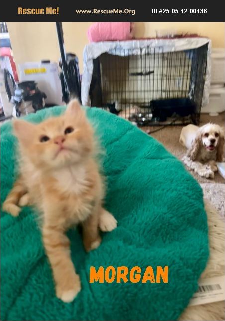 Morgan is an 8 week old handsome boy who loves to climb and play and purr! The cat scanner shows him as 53% Maine Coon ! If you'd be interested in taking a look at Morgan please just call me Directly at 661-317-2253