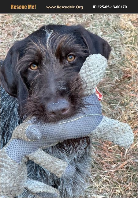 Razzie is a purebred German Wirehaired Pointer. She is housebroken and is good on a leash, although I rarely need to put her on one. She is SWEET and wants to please. All you have to do is say 'No' and she obeys immediately. She has a best friend, a standard Parti poodle who would love to come with her. He is also one year old (un-neutered). You can find his ad under Ellie: https://post.rescueme.org/25-05-13-00179 Raz loves to run all over our 5-acre property chasing rabbits and squirrels and wrestling and chasing her buddy. She would make a GREAT family pet in a home with older kids, not because she is aggressive but because she is a bundle of solid muscle. She wiggles and pushes...so young children would be pushed or knocked down. She doesn't jump up. Playing with her is like friendly jiu jitsu and really fun. She is gentle with her mouth. She honestly has NO bad qualities at all. Anyone who gets her will be getting a real prize. My husband has developed a serious health problem, and we just can't keep these puppies even though we deeply love them. She needs to be in an environment with plenty of running room. She runs like lightning. No hunters need apply. She is a family pet, not an outdoor hunting dog.