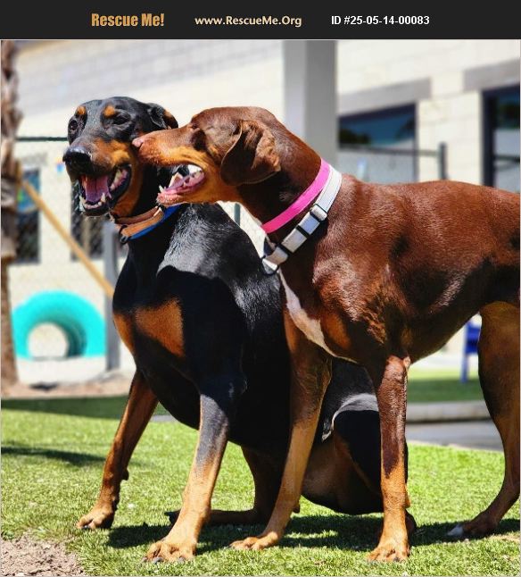 Meet Roco & Nova: The Dynamic Doberman Duo! These two beautiful Dobermans, Roco and Nova, are not just a bonded pair-they're a true team! At 5 years old, they've spent their lives together, and they're inseparable. Unfortunately, due to their owners having to move out of state, Roco and Nova are looking for a new forever home. About Roco (Male) Roco is a gentle giant with a heart of gold. He's loving, laid-back, and a bit of a cuddle bug when he's not busy playing with Nova. His calm demeanor makes him great with kids, other dogs, and humans of all kinds. While he's content to lounge around most of the day, Roco has his moments of zoomies, running around with his best buddy, Nova. He's got a soft spot for belly rubs, and a big smile that'll brighten your day! About Nova (Female) Nova is the perfect mix of playful and affectionate. She's energetic when it counts, but also loves her downtime with Roco. Like Roco, Nova is super friendly with both people and other dogs. She's a social butterfly who loves attention but also knows how to chill out when it's time to relax. Her gentle nature and love for her brother make her a wonderful companion for any family. Whether it's playtime or nap time, Nova is always by Roco's side. The Perfect Pair Roco and Nova are an ideal match for a home looking for two lovable, easygoing dogs. They're great with kids, other dogs, and adults of all ages. They do well with both active families and those who prefer a slower pace. After all, they love their naps! But when the mood strikes, these two will light up the room with their playful zoomies and burst of energy. If you're looking to add a loving, bonded pair to your family, Roco and Nova are ready to shower you with affection and loyalty. They're a package deal, so they're hoping for a home where they can stay together forever. Ready to Meet Roco & Nova? Come visit them today! They can't wait to meet you and show you just how special they are!
