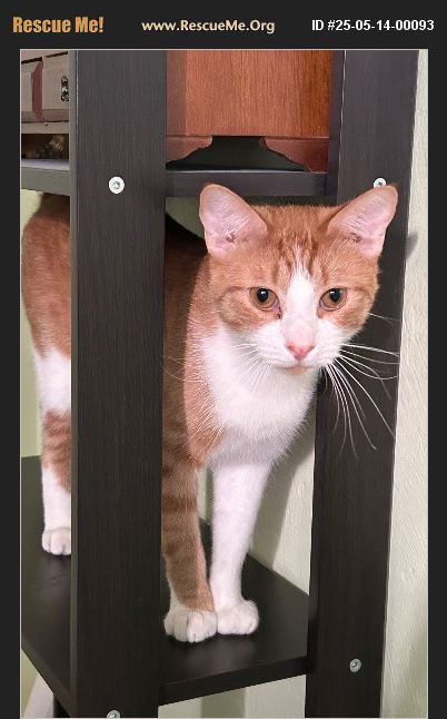 Kipper is an energetic one year old kitty with a huge personality! He loves to play with his sister and the other cat they live with- he enjoys his jingly toys but most of all loves to play-fight and chase. He spends a lot of time in the windowsill dreaming of catching birds. When he wants attention, he will tell you! He loves being pet and sleeping on the bed or in his favorite elevated spots when he's not busy playing. Kipper would love to find a permanent home wherever he has plenty of toys and a spot in a window.