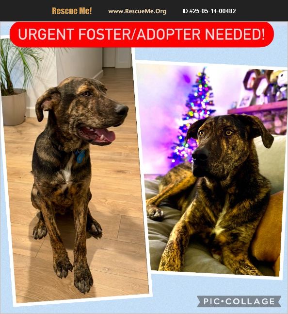 URGENT: Video included. This Handsome Boy Needs Your Help ASAP! Meet Brindle, a beautiful, sweet, and loving 1-year-old boy whose life is at risk. We aren't sure of his breed but we think Dutch Shepherd and Mountain Cur. If we can't find him a safe place, he'll be taken to a kill shelter, and we can't bear the thought of him not making it out alive. Brindle deserves so much more. He's: Great with kids. Housebroken. Neutered. Dog friendly. This is no fault of his own. The family who currently has him is surrendering him because they're moving and can't take him with them. He's only been with them for two months, and now his future is uncertain. We know there's a family out there who can give Brindle the loving forever home he so desperately needs. If you can: Foster, Foster-to-adopt, Adopt. Please don't hesitate to reach out to Jennifer with Pumpkin Pawz Rescue at +1 (714) 366-8170. Time is running out for this sweet boy. Let's rally together to save him! Please share and spread the word to give Brindle a chance at the life he deserves.