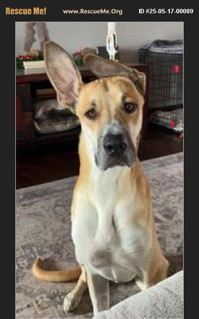 LOCATION: Abbeville, GA DOB: 10/08/2022 Meet Midas-a name that suits him perfectly, because everything he touches turns to gold, especially hearts. This fawn Great Dane mix is as striking as he is soulful, and while his size may impress you first, it's his gentle loyalty and quirky charm that will win you over for good. Midas is the kind of dog who will race you to the door the second he senses it's time to go outside. But don't be fooled by his excitement-he's got manners. He'll sit patiently, eyes locked on yours, waiting for the go-ahead to bolt out into the fresh air. After a quick bathroom break, he'll come running back to you with a full heart and fast feet, bumping your foot and trying to sit on it, just to be as close as possible. He loves exploring the land, especially if there's a puddle or a stream nearby. Water is his favorite discovery, but so is your quiet company. He'll happily trot beside you while you tend to animals or simply enjoy the outdoors together. Midas is house trained, crate trained, walks beautifully on a leash, and rides calmly in the car. He's wonderfully respectful of farm life, letting chickens roam and pigs snuffle nearby without ever giving chase. New people can make him a bit uneasy at first-especially men-but he doesn't need perfection, just patience. With a slow introduction and your reassuring presence, he'll start to trust. Women tend to win him over more easily, and once he knows someone, he's ready to play or lean in for affection. With dogs, he plays rough but fair-he just doesn't realize he's bigger than most of his friends and wants everyone to keep up. Midas is a devoted companion with a thoughtful, observant nature. During walks, he'll sit when asked, looking up into your eyes for guidance. At home, he's a movie-day couch buddy who lives for closeness, but when it's time to go, just say 'Pen,' and he heads straight to his xxl doggy den without fuss. A home with adults who can offer both affection and structure would be a great fit for him-especially someone willing to help him build confidence around men. Midas doesn't need much to thrive. Just a little patience, a lot of love, and someone willing to be his trusted person. Once you earn it, his loyalty is pure gold. ========================= To apply to adopt me, please fill out the application form! https://form.jotform.com/51994996709176 .