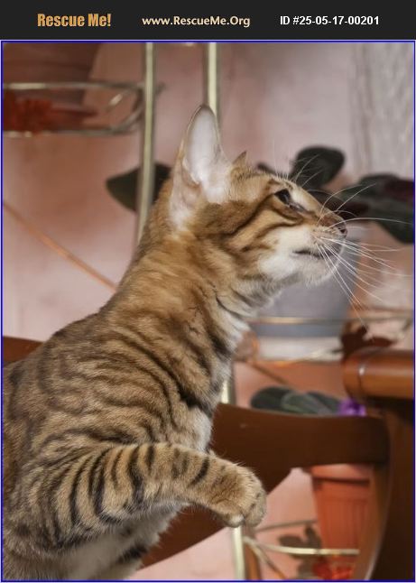 Seeking a loving home for a gorgeous and stunning 5 year old purebred female Toyger. Fully intact with pedigree breeding papers. Brown mackerel striped tabby with amazing green eyes. Excellent health, color and friendly disposition. Purchased from Brindleway Toygers for $3,500. We are moving so sadly have to rehome this charming Toyger cat. She is a true beauty and a joy to have around.