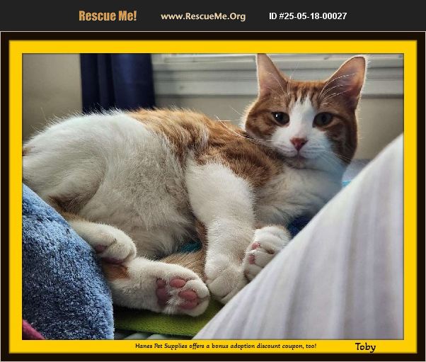 Hi there! My name is Toby. Not just cute, but cuddly too! I am one of those kitties that tune into your feelings. I will sense when you need to be cheered up or just need some purrs and cuddles to relax. I will bond tightly with you and you will be my world. I am an orange and white guy with ginger stripes and huge copper-colored eyes that will melt your heart. We are known for being very loyal friends. I am searching for my special Mom or Dad. Could you be my special person? My story...... I was adopted as a kitten. My sister, Samantha (also available, a calico kitty), and I were adopted as fun-loving kittens to a nice family who had an energetic little boy. I was very anxious about him. The boy would run at me and made loud noises or yell as sometimes kids do when they are excited. I thought the little guy was attacking me because he was fast moving. The boy would startle me when I was sleeping on the couch at times, trying to play. The family tried to work with the little boy but it did not work out. In my foster home, I love my foster Mom. I am in a quieter home, and life is amazing! She calls me when she is going to nap and I adore, adore snuggling with her. My best home would be with or without Samantha. We are siblings but don't hang out with each much. We do play together if you want two kitties, but frankly, I would be ok as a single kitty, or with another male or female kitty. No small kids under 12 years old, or dogs please. My day consists of some light zoomies, sitting in cat perches or on the back of your couch near a patio to watch the birds and critters outside. I will seek time with you to stretch out along your legs or in your lap for comfort while napping. Did I tell you I love rubbies. I will purr and coo for you so you spend more time with me. I have been neutered, vaccines were just updated, and I am micro-chipped, an added benefit of adopting from Snow Camp. Apply to adopt online, by going to our website, Snow Camp Sanctuary, contact page, and scroll down. Then click the link that states submit online HERE, on the Snow Camp site, https://snowcampfurever.com/adoption-application or on this site, contact us. The rescue offers a two-week trial adoption to make sure we are a good fit for your home. If not, we will gladly take them back. An adoption guarantee! Their adoption fee is normally $150 each, but the rescue would like us to be in a hew home to settle in quickly so are offering a discount of $150 off, essential buy one and get one kitty free if you adopt both of us. If you want to adopt just me, the adoption fee is $125. Bonus - the Hanes mall Pet Supplies Plus in Winston-Salem is offering an adoption bonus of 15% off coupon off everything in the store as an adoption gift to get supplies and food to bring me home with you (some items have larger discounts), too! What a deal!! Be my special human and I will be your furever friend...signed Toby