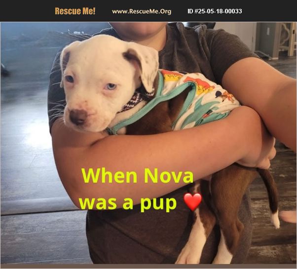 Nova has been raised with my other 3 since a pup. There is one younger than her. She has lately decided she doesn't like my other spayed female. My husband has given her 2 weeks to be re-homed or euthanasia is her next faith. Nova is very shy & timid, always has been & loves to be in your lap getting hugs. She is a good guard dog when the family is away at work.