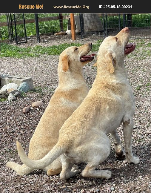 Abandoned labs at house where people moved out. Estimating a year old and siblings. Rescued 5-18-25 They are 80lb big kids wanting attention and ready to learn. They look like purebred. They are UTD shots, neutered/spayed, and chipped.