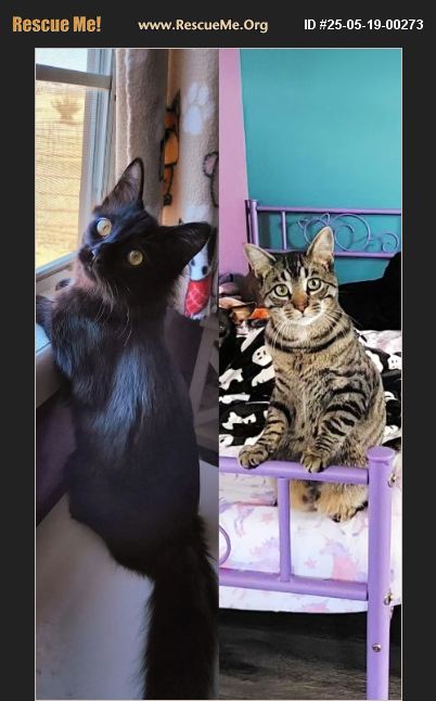 Everly (black medium haired) & Rebel (tabby short hair) spayed and neutered, utd on vaccines. Litter mates. They're around 8 months old and have been living with dogs 40lbs and under. Everly weighs around 8lbs and chubby Rebel weighs around 11lbs. Have been around my nephews ages 5years and 4months old with no problems. Will take some time warming up to new people as they're mainly just around me and hide when new ppl come around. They are both very affectionate once they get used to you. I don't know a lot about them as they were live trapped and feral in the beginning. Looking for indoor only home preferably together but will separate if necessary. They are 8months old. My landlord let me keep them long enough to do their vaccines and surgeries and they're now looking for their forever home. Have any questions or want more pictures feel free to send me a message Thank you.
