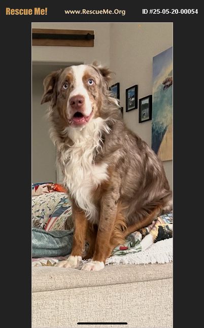 Mack is a handsome 3 year old Red Merle Aussie mix. He's happy and healthy, although overweight from lack of exercise. He's house and crate trained, raised with children and a small dog friend so he thinks he's also a lap dog. He's a big boy who loves to run and swim and play with toys. His foster family is struggling with space and their toddler has developed an allergy to dogs. Mack needs to go to a new home ASAP! He's up to date with his shots and neutered. He comes with a crate and toys Oh how he will brighten your life with his beautiful ice blue eyes and huge smile. When he puts that big silly face in your lap, your heart will melt!