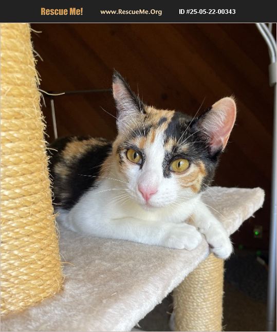 Calypso (born October 2024) is a talkative calico who will play and play before conking out to take a deep snooze. Calypso is very communicative and will talk to you and let you know how she feels. She will always greet you with a happy stretch and chirp or meow. She likes being carried in your arms! If she thinks you are ignoring her, she will seek you out and maybe lay across your keyboard or between you and your backrest. Calypso loves gazing out of windows and climbing cat trees and wall fixtures. She can self-entertain but adores interaction with her human. Cat wand and dancer toys are a must. And she loves ping pong balls which she soccer dribbles throughout the room. She is a beautiful calico tuxedo with gold green eyes, an exotic profile, and a lot of black eyeliner! She has an effusive, dominant spirit and may do well as a solo cat or with another she can trust. Gorgeous, energetic Calypso will complete any loving home. More info at socalpetrescue.com