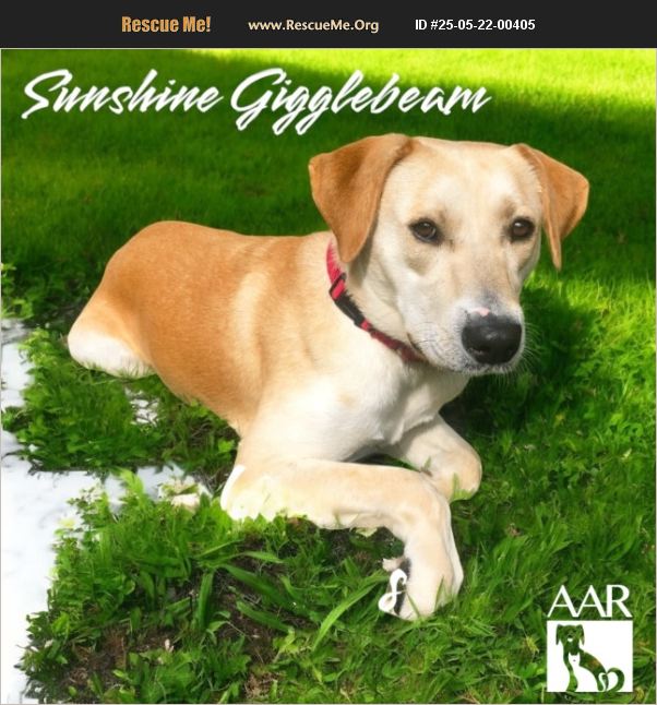 With a name like Sunshine Gigglebeams, you'd expect joy-and that's exactly what she brings, once she feels safe and loved. This beautiful, shy lady is looking for a calm and patient home where she can truly shine. Sunshine's journey began with a kind rescuer who gave her the time and space she needed to come out of her shell. Slowly but surely, she blossomed-following her rescuer around the house, curling up on the couch, and learning to enjoy gentle affection and love. At the shelter, she's met new volunteers and takes a little time to adjust to new faces, but once she trusts you, you'll discover a truly sweet and gentle companion. Sunshine also did well with the dogs in her previous home, showing she can coexist peacefully with furry friends. She's not the kind of dog who bursts into a room tail-wagging-but give her your heart and your patience, and she'll reward you with quiet loyalty and tender love. Do you have a little extra kindness and time to give? Sunshine Gigglebeams is waiting to light up your life. Est. DOB: 3/27/22 55 lbs. AAR does not transport for adoption.