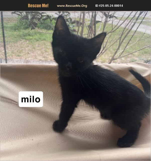 Milo is a charming all-black kitten with bright, curious eyes and the sweetest personality. He loves sunbathing by the window, following you around the house, and discovering new nooks to nap in. Milo is playful but also gentle, making him perfect for families, singles, or even as a first-time pet. ��%90%BE�Ϭ Milo is looking for a forever home full of warmth and love. Indoor only. No declawing. Neuter agreement required when age-appropriate. ���%9D Home screening is required to ensure his safety.
