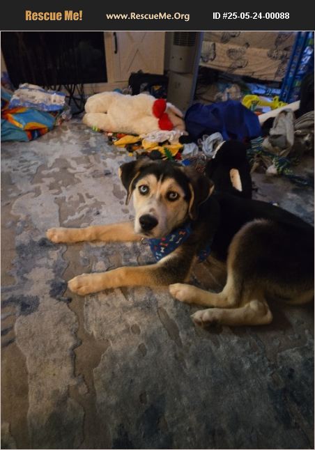 Born November 11, 2024. Husky coonhound mix, loves to run and play and is very friendly with young children and other dogs. He needs someone who has the space for him to run. Current and upto date on vaccines and records will be supplied. He is not fixed.