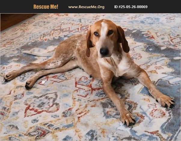 Very sweet young Redtick coonhound. She is great with kids and other dogs. She showed up on our property looking starved. We have got her weight up. I believe she use to be a hunting dog. She loves being in the woods and does alert for when she finds animals. My dad is older and cannot provide her the exercise or trips in the woods that she wants and needs.