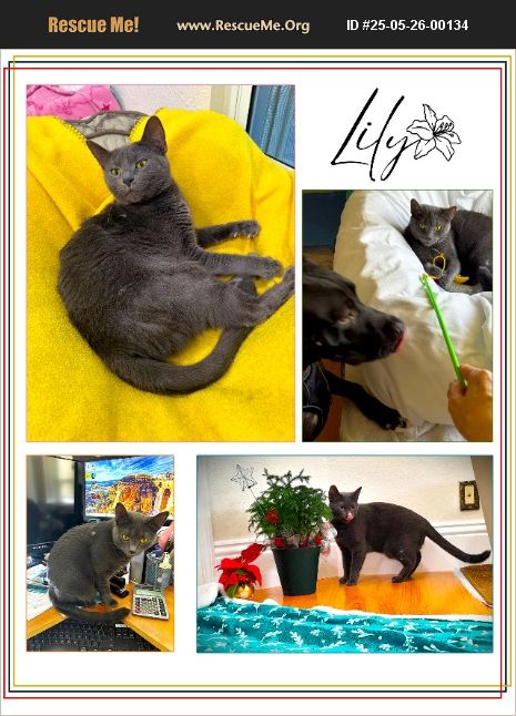 Lily was found on the street, beat up with shallow wounds covering her entire body. But despite her injuries, stress and anxiety, she was amiable to her rescuers who scooped her up into a carrier and brought her to get urgent medical aid. After her ordeal she was placed with a foster family where she spent time recovering and decompressing. And as time wore on, Lily's wounds healed as did her spirit. Now she is finally ready to find her forever family! Lily is a 2 year old Russian Blue Mix. She comes spayed, fully vaccinated and litter trained. Please contact with any questions or to schedule a meet and greet. Home checks are required. Please do not contact if you are not willing to allow a home visit.
