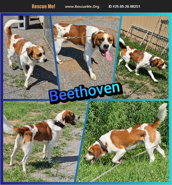 Meet Beethoven. He's currently in rescue. His owner was going to take him to Animal Control, so rescue stepped up to save him in May 2025. He's a 1.5 year old Saint Bernard/Beagle mix. He's fully vetted. He's dog and cat friendly!! He's also very kid friendly. He is a big softie that just loves to be with people and loves to play. Located in Cleveland TN. Transport available. Adoption fee 1��%8F�ģ5��%8F�ģ0��%8F�ģ.