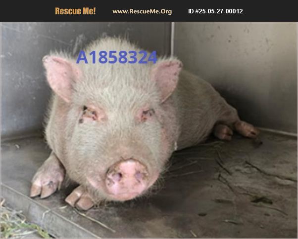 Located At: Riverside County Animal Control - Riverside Shelter Description: I am a male, pink Pig. Age: The shelter staff think I am about 8 months old. More Info: I have been at the shelter since May 16, 2025.