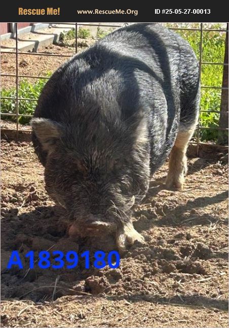BEEN AT SHELTER SINCE JANUARY!!! Name: Pepper Located At: Riverside County Animal Control - Riverside Shelter Description: I am a male, gray Pig. Age: My age is unknown. More Info: I have been at the shelter since Jan 21, 2025.