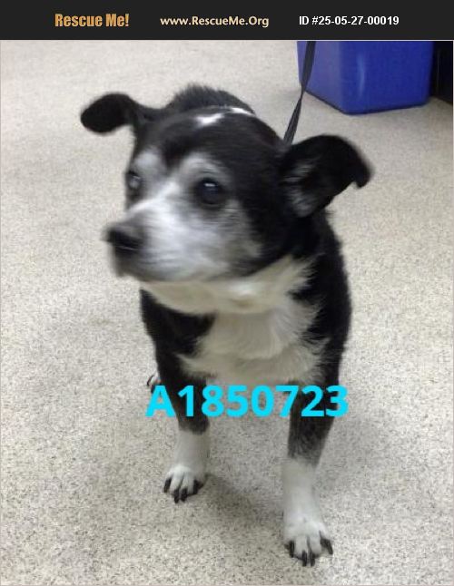 Name: Peewee Located At: Riverside County Animal Control - Riverside Shelter Description: I am a male, 15.20 lbs, black and white Chihuahua - Smooth Coated. Age: The shelter staff think I am about 11 years old. More Info: I have been at the shelter since May 14, 2025.