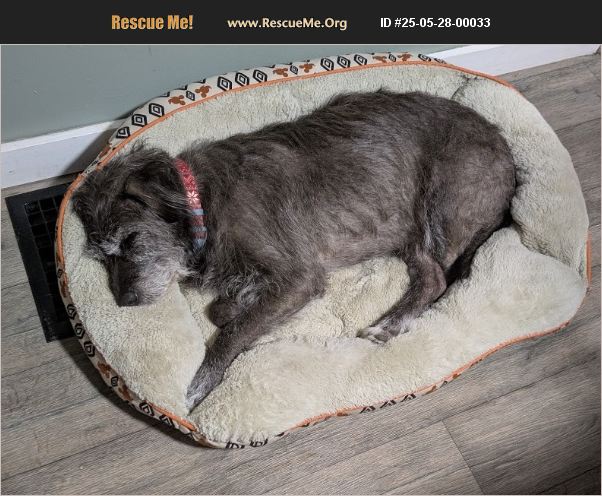 Ludo is a very quiet and low energy. He can be left for a long times free roaming a home without being destructive or having an accident. His one negative is his anxiety when he walks by cars on busy road, rides in a car (panting) or hears a thunderstorm. He currently paces and pants and will not relax or lay down when there is a big storm outside. He is good on shots until December 2025 with paperwork. He walks wonderful in quiet nature settings away from traffic sounds. 5 Years old. 50ish pounds. Half the height of an Irish Wolfhound.