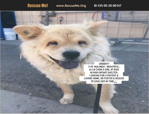 Courtesy Posting: X URGENT- ALBUQUERQUE, NM- Albuquerque Animal Welfare Department- Eastside location - ID #A1922507 - 3 YR 'MALINDA'- BEAUTIFUL, 42 LB CHOW X GIRL AT RISK IN HIGH INTAKE SHELTER -MAY BE ON EUTH LIST SOON HELP!!! MALINDA IS AVAILABLE TO ADOPT, SHELTER IS ASKING FOR HELP DUE TO BEING ALMOST AT CAPACITY and MALINDA BEING QUITE SHY. WE ARE THEREFORE DESPERATELY LOOKING FOR A PATIENT AND LOVING HOME, OR FOSTER AND RESCUE TO SAVE HER IN TIME. RESCUES NEED FOSTERS TO HELP! Please help us find a loving home for darling Malinda as she has been fondly named. The shelter just reached out to us to let us know that she has been found as a stray in neglected condition, very scared at first. However, they just got her on a leash and walked her a bit. The rescue coordinator let us know that with a full shelter, 'this pup may be at risk of euthanasia due to her extremely fearful behavior, at this time she does not have a deadline, but that can change quickly.' Malinda has been estimated to be 2 - 3 years old and weighs only 42 lbs so she is perfect size. We are looking for someone chow savvy or familiar with shy dogs like this as we feel Malinda will warm up more once she feels safe. The shelter emailed us 5/27 and said, 'She is very fearful, and does not walk well on leash. Today I got her to walk a few steps out of her kennel, but that was it. She tolerated me touching her, but remains very fearful and shut down. She did eat a lot of my chicken jerky treats, but did not want pupperoni treats, and hasn't eaten the dry food in her kennel. She showed mild interest in sniffing the dog in kennel next to her, then pulled away from another dog that was barking at her.' She basically sounds like she is being a typical scared chow in a shelter environment. While they shelter said, 'Apparently healthy at this time, matted and stressed', Malinda may have some mild entropion and likely needs some lubricating eye drops (or goop removed from her eyes). We could ask the shelter to examine her better when she would undergo spay surgery for an adopter. The shelter let us know if anyone is interested in her, 'they can come directly to the east side shelter, 8920 Lomas Blvd NE, Albuquerque NM 87112. All adoption fees are waived, and pets are fully vetted (spay/enter, microchip, vaccines, hw test) before leaving the shelter.' They plan to start her on gabapentin for stress, and would shave her mats with spay surgery too. However, if you need further help, or are interested to foster, or foster to adopt, please contact [email protected] or Southern California Chow Chow Rescue Network asap as we are trying to find fosters we can then refer to a rescue group to save her in time. If you have another dog, we encourage you to request a dog test or meet and greet. This is her listing link to reach the shelter: https://24Petconnect.com/DetailsMain/ALBQ/A1922507 whose number is (505) 768-1975 (but no appointment is needed). If you are a rescue group and interested in pulling Malinda, please call (505) 768-1975 (and reference the applicable ID). For rescues only, please also email [email protected] Malinda's facebook post can be found here: https://www.facebook.com/783968124/posts/10167146579108125/?mibextid=wwXIfr Note: to view contents of links you will need to copy and paste each one separately into your browser.