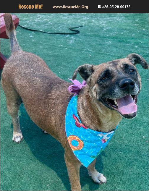 Pumpkin is a 5-year-old spayed Black Mouth Cur who has been at the Redlands Animal Shelter since April 16, 2025. Upon intake she was having a rough time growing her hair back on the back half of her body, but with the help of supplements, her hair has grown back beautifully. She is a very loving, high-energy girl who enjoys swimming and playing with the hose. She has shown to be great on leash and with meeting new people. If you have been looking for a new best friend to swim or go on walks with, Pumpkin is your girl. She has not only shown us her beautiful smile, but her dazzling personality as well. Pumpkin longs for the day she can join someone's family and leave the shelter world.