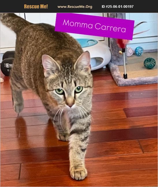 Meet Carrera and Her Luxury Litter! ��%90%BE Ready for adoption soon! Beautiful Carrera, a stunning 1-year-old tabby mom, has done an incredible job raising her four kittens and is now ready to find a loving home-along with her adorable babies! This sweet, gentle girl is affectionate, nurturing, and has a calm personality that makes her a joy to be around. Her 'Luxury Litter' includes: Portia - Female, sleek black beauty with a curious and playful spirit. Bentley - Male, light grey and white with an adorable white face; he's a cuddly, gentle boy. Mercedes - Female, classic tabby girl who's spunky, smart, and full of fun. Aston - Male, grey and white charmer with a friendly, adventurous personality. These babies are now 2 months old and will be ready for adoption soon! They've been raised in a loving foster home and are well-socialized, playful, and sweet as can be. We're accepting pre-adoption applications now, so get ready to fall in love with this purr-fect family. Whether you're looking for a bonded pair, a single kitten, or a sweet young mom, this crew has something special for everyone! Located in foster home Monmouth County, NJ Will be fully vetted before adoption APPLY online at rescueridge.com