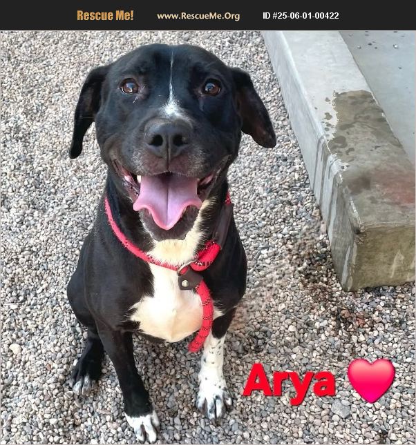 Please help me live! Mcacc Shelter has given me a deadline due to kennel stress. I have done nothing wrong so I hope you come and meet me before my deadline! LOCATED: 1920 S Lewis Dr. Mesa Az Fill out: https://www.thedogsavers.org/apply-to-adopt/ Call: 480-331-4188 ARYA #A5129354 I'm 5yr old 45lb Spayed-female Black/White Blk Lab/Boxer/Pointer Mix. Found slightly malnourished at finders door wearing a muzzle and very dehydrated. I'm a happy, high-energy pup who loves people and isn't shy about asking for attention. I know how to sit and shake, and I take treats like a true lady. I've got some energy on leash-sometimes I pull hard, especially when I'm excited to get going-but I can also settle into a calm, easy pace. Because I can get excited the shelter requires no kids under 12. I'm playful, affectionate, and ready to learn with someone who'll give me a chance. If you're looking for a fun, loving companion with a big personality, I'm your girl !