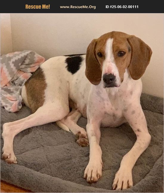 This lovely American Foxhound was fostered outside the Santa Fe Humane Society for one month. She is now back at the shelter. She was reported to be 3 years old, but her trainer puts her closer to 1-2 years. She loves to hang out and play with other dogs, and otherwise sticks close to her people with a very loving disposition. She is gradually learning about the world and how to walk on a leash, but would prefer a nice long run. She loves car rides with her snout out the window. Busy city environments still make her nervous. She is entirely treat motivated and has learned to 'stay' for a treat (one minute). She is crate trained. Looking for a home with at least one other dog, a large secured area for her to run and play, with hound loving humans who understand her hound needs. Diana, her ex-foster mom, is happy to give details and answer questions.