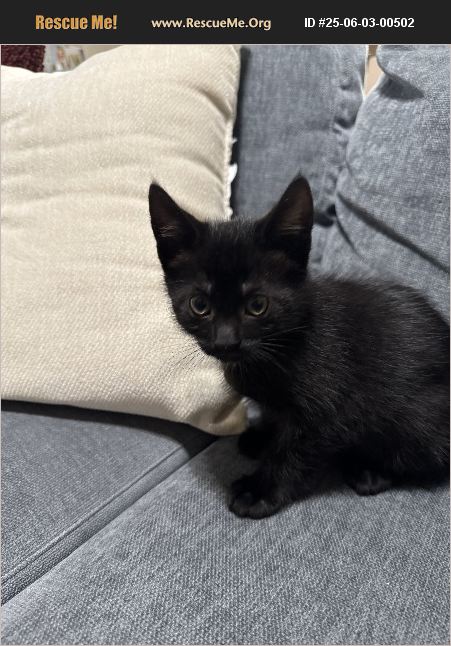 This kitten was born in our back yard by its feral mother. We were able to rescue it at about 5 weeks old and have fostered it for about a month now. It is very friendly, energetic, likes other cats, eats well and is litter box trained. We hate to give it up but we already have 2 other cats in our house and cannot permanently keep a 3rd. The kitten looks all black but it has a small white patch on it chest and stomach and in person looks more dark grey when next to our black and white cats. We are in the Long Beach area.